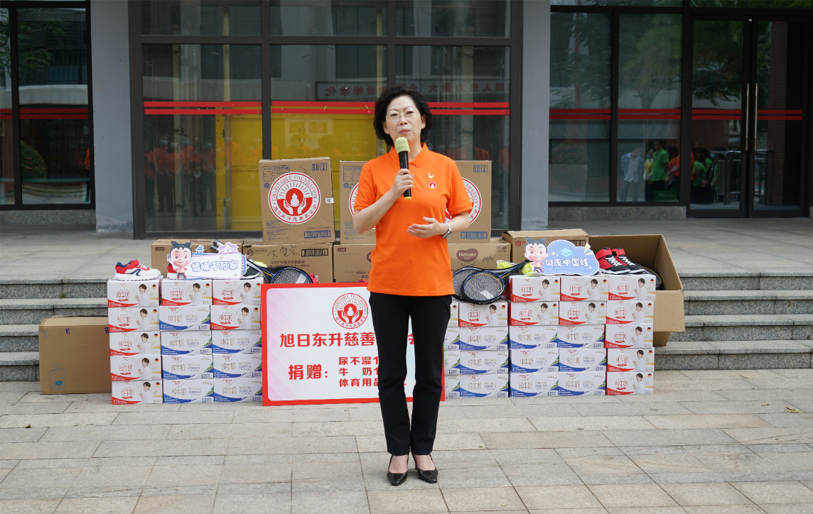 紧接着,海口市社会福利院院长唐凤英致辞。她首先感谢宝博药业集团、旭日东升慈善基金会7年来,对海口市社会福利院的持续关注和无私帮助。她特别提到,2022年由宝博药业集团捐资建设的“爱·护”项目医护隔离观察区,帮助福利院的孩子们渡过了疫情防控的难关。今年,熟悉的宝博人又来到了福利院陪伴孩子们,给予了这里的小朋友们爱的力量。